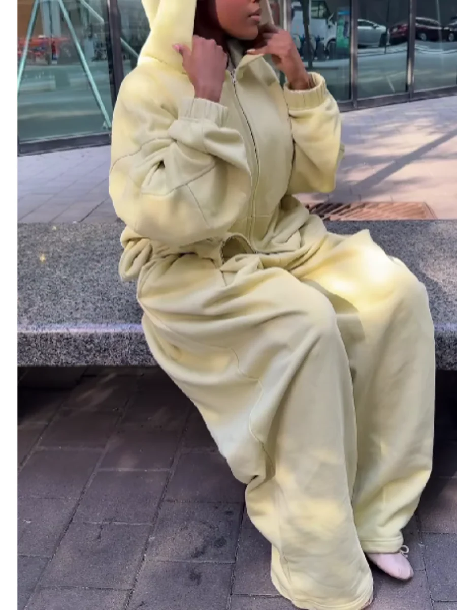 Hooded Solid Color Zipper Suit